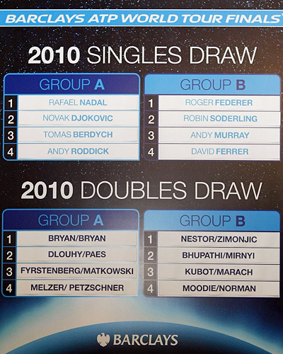 ATPワールド・ツアー・ファイナルズ2010ドロー ATPワールド・ツアー・ファイナルズ2010出場者 初戦を勝利した地元勢のマレー 初戦でフェレールを破ったフェデラー